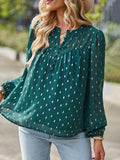 Material: Made of 100% Polyester, this top is soft, lightweight, and easy to care for. The polyester material is durable and has good wrinkle resistance, making it a low-maintenance choice for everyday wear. Design: Featuring a beautiful printed design, this top has a single-breasted closure and long sleeves for a stylish and sophisticated look. The print adds a touch of elegance to any outfit, making it a versatile piece for your wardrobe. Styling: Pair this top with your favorite jeans and sneakers for a casual yet trendy look, or dress it up with a skirt and heels for a more polished ensemble. The single-breasted design adds a touch of femininity to any outfit. Occasion: Perfect for both casual and formal occasions, this top is versatile enough to wear to work, a night out, or a weekend brunch. The sophisticated print and single-breasted closure make it a chic choice for any event. Season: This top is perfect for wearing year-round. The long sleeves provide extra coverage in cooler weather, while the lightweight polyester material is breathable enough for warmer seasons. Whether it's spring, summer, fall, or winter, this top is a stylish choice for any season.