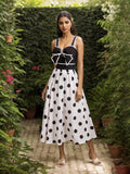 The new fashionable resort sexy bow one-piece swimsuit + polka dot print skirt (single piece) is a charming and versatile vacation attire. Can be purchased together to create a variety of looks. This one-piece swimsuit may have a sexy design and is decorated with bows, giving it a cute and stylish look. Its design focuses on highlighting the curves of a woman's body, allowing you to look confident, sexy and stylish during your vacation. The skirt features a polka dot print pattern, which adds a cute and retro element. Its design can cover the thigh part, adding a certain degree of conservatism, and is suitable for wearing on vacation. The combination of these two separate pieces allows you to match and wear them however you want, whether on the beach or at a resort, to show off your style, personality and femininity.