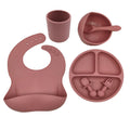 Bib + water cup + spoon + bowl + plate + knife and fork *1