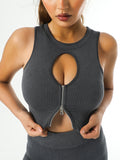 Elevate your workout wardrobe with this versatile Zipper Yoga Sport Tank Top, designed for active women who demand both style and functionality. The convenient front zipper allows for easy layering and temperature control, making it perfect for yoga, gym sessions, or casual wear. Crafted with breathable, moisture-wicking fabric, this tank keeps you cool and dry through intense practice or light cardio. The supportive fit provides comfortable coverage while allowing full range of motion, so you can focus on your fitness goals without distraction. Whether you're flowing through poses or hitting the pavement, this essential piece transitions seamlessly from studio to street.