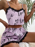 Cute Love Print Pajamas Homewear Fashion Lace Stitching Suspender Set