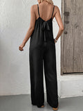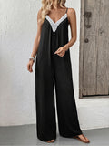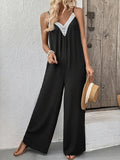 Sleeveless casual lace stitching suspenders wide-leg jumpsuit