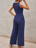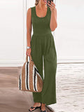 Women's solid color loose sleeveless jumpsuit featuring a trendy style and a soft and comfortable fabric. It can be worn for daily, dating, going out, vacation and so on. Washing method can be machine wash or hand wash. Fabric resists wrinkling and pilling. The size is measured by hand, and it is normal for there to be an error of 1-3cm.
